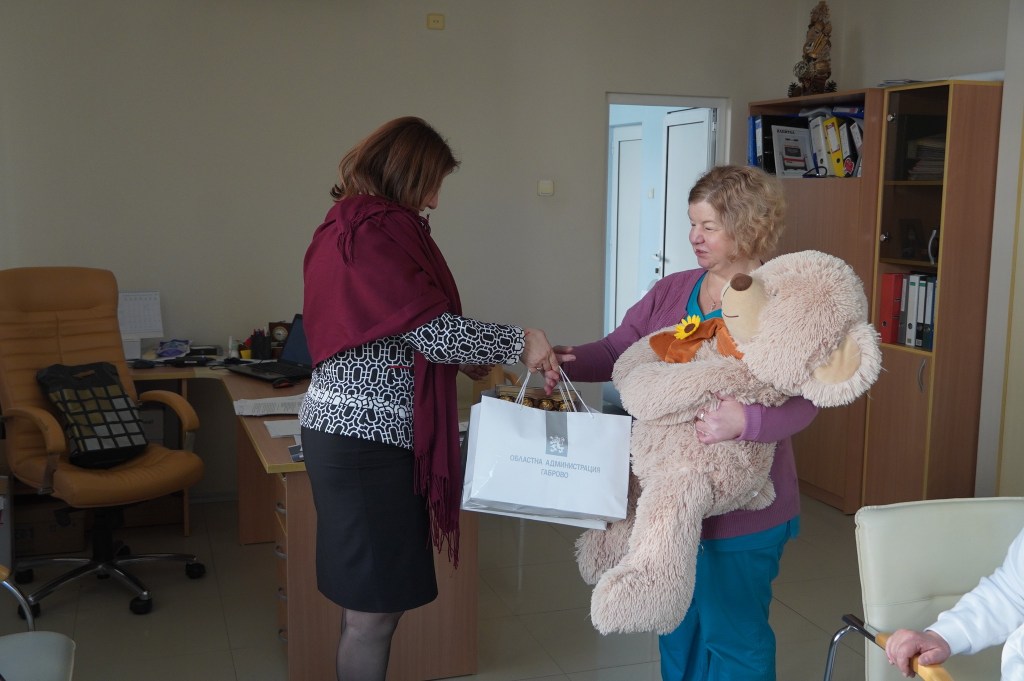 “В дните преди Коледа, част от играчките зарадваха малчугани в неравностойно положение в Севлиево с помощта на Гражданско сдружение „За Севлиево“. Мечоци бяха дарени в болниците в Габрово и в Севлиево. През февруари играчки отпътуваха за Турция, където бяха раздадени във вилает Хатай. Днес мечета получиха и децата от Центъра за настаняване от семеен тип за деца и младежи с увреждания в Габрово. 27 малчугани, разпределени в базите на ул. „Мирни дни“ № 1А и на ул. „Хризантема“ № 27, вече се радват на новите си плюшени приятели.“, обясни областният управител Кристина Сидорова и благодари на всички дарители.